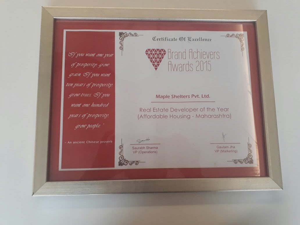 MAPLE GROUP is a new age real estate enterprise that is built on pillars of quality, innovation, trust & transparency. Maple Group offers housing solutions across a spectrum of categories, right from premium luxury to eco-friendly projects to affordable housing solutions. All Maple Group Projects are thoughtfully designed, keeping the consumer at the core and offer all the modern amenities that a family seeks for a joyful living! maple group aapla ghar presents RERA registered projects in 15 locations across pune! In the last 15 years, Maple Group has successfully completed 25+ Projects with 30,00,000 sq. ft. of excellent construction, handed over homes to 2500 happy families and shops & offices to 750 happy businessmen.